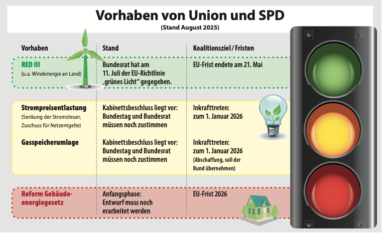 Die neue Bundesregierung ist nun über 100 Tage im Amt. Union und SPD hatten im Koalitionsvertrag über zwei Dutzend Energievorhaben vereinbart – aber was davon wurde schon umgesetzt? Und was ist in der Pipeline?
